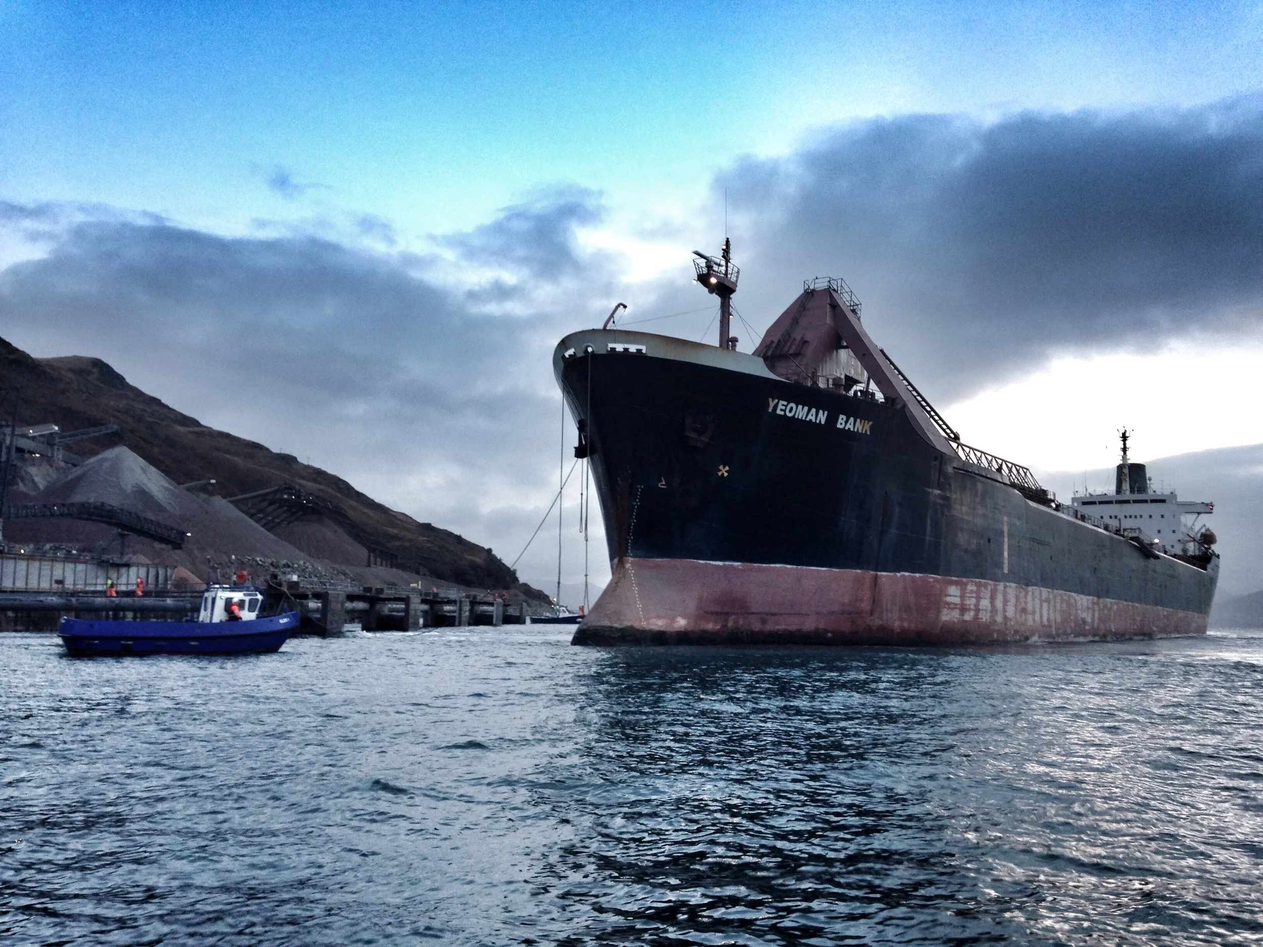 Yeoman Bank 18 Nov Written By coastal connection Cameron was back out on the water this week. The guys were acting as a safety boat while the Yeoman bank docked at Glensanda Quarry. Next they carried out a transfer duty then return to Loch Feochan before the next storm hit. coastal connection
