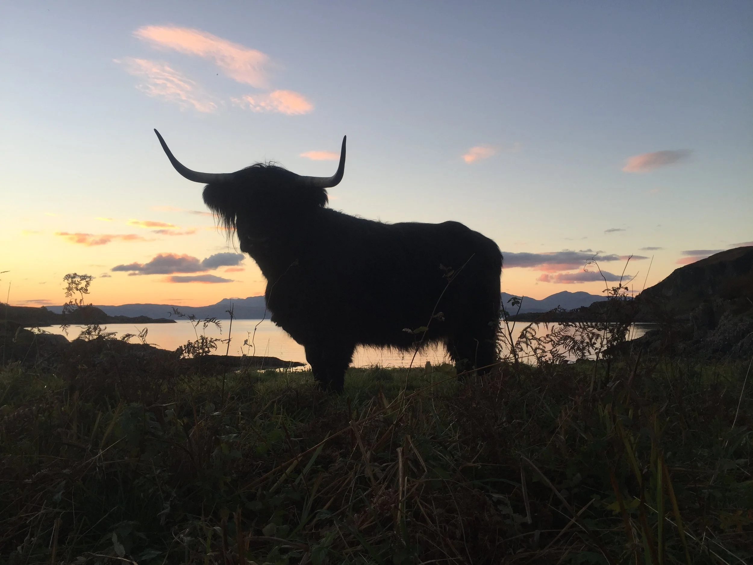 On the few trips the boys have been out, there has still be plenty to see. There has been great sightings of the sea eagles and on a private trip to Tobermory they had bottlenose dolphins playing with the boat. Seals and still soaking the late winter sun when they can. Cameron took this photo when he was feeding the highlanders. Mull in the far back ground.