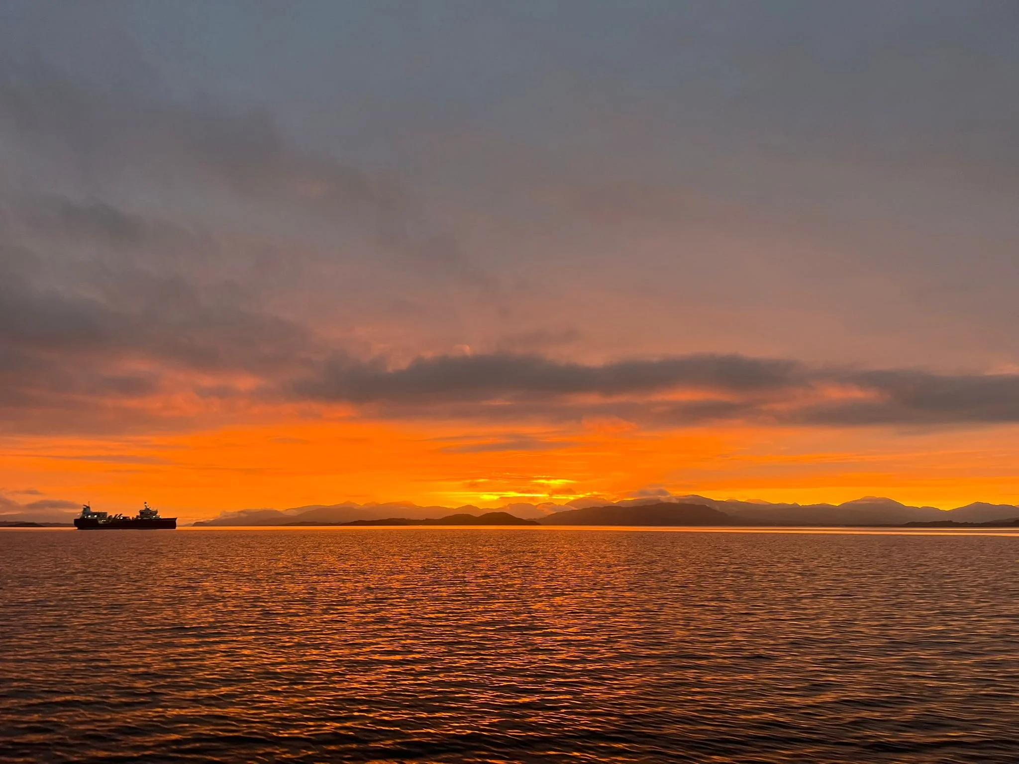 Early Bird 29 Jul Written By coastal connection Struan had a cracker of a start to the day. On his way to his first charter the sunrise was incredible. The Ronja Christopher heading for Oban. coastal connection
