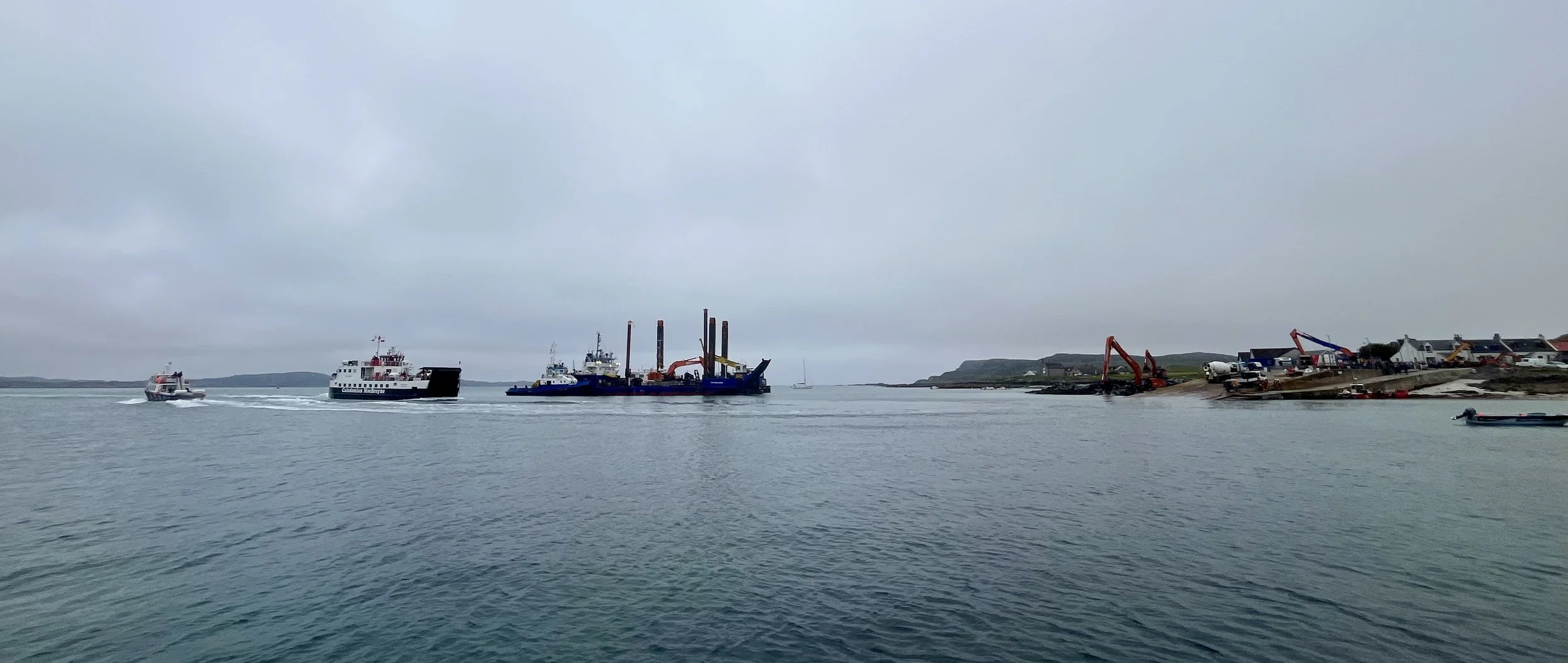 Iona is seeing some changes on the waterside. There is a wee upgrade of the pier with the completion of the concrete work. A new toilet block is being built too. The big change is the new breakwater being constructed to the South side of the ferry pier. A huge amount of hardware and vessels present there. Thousands of tons of boulders are being placed on the seabed. Rock from Ireland, Norway and the local Glensanda quarry all making up the structure. It should provide some great shelter from the swell and weather.