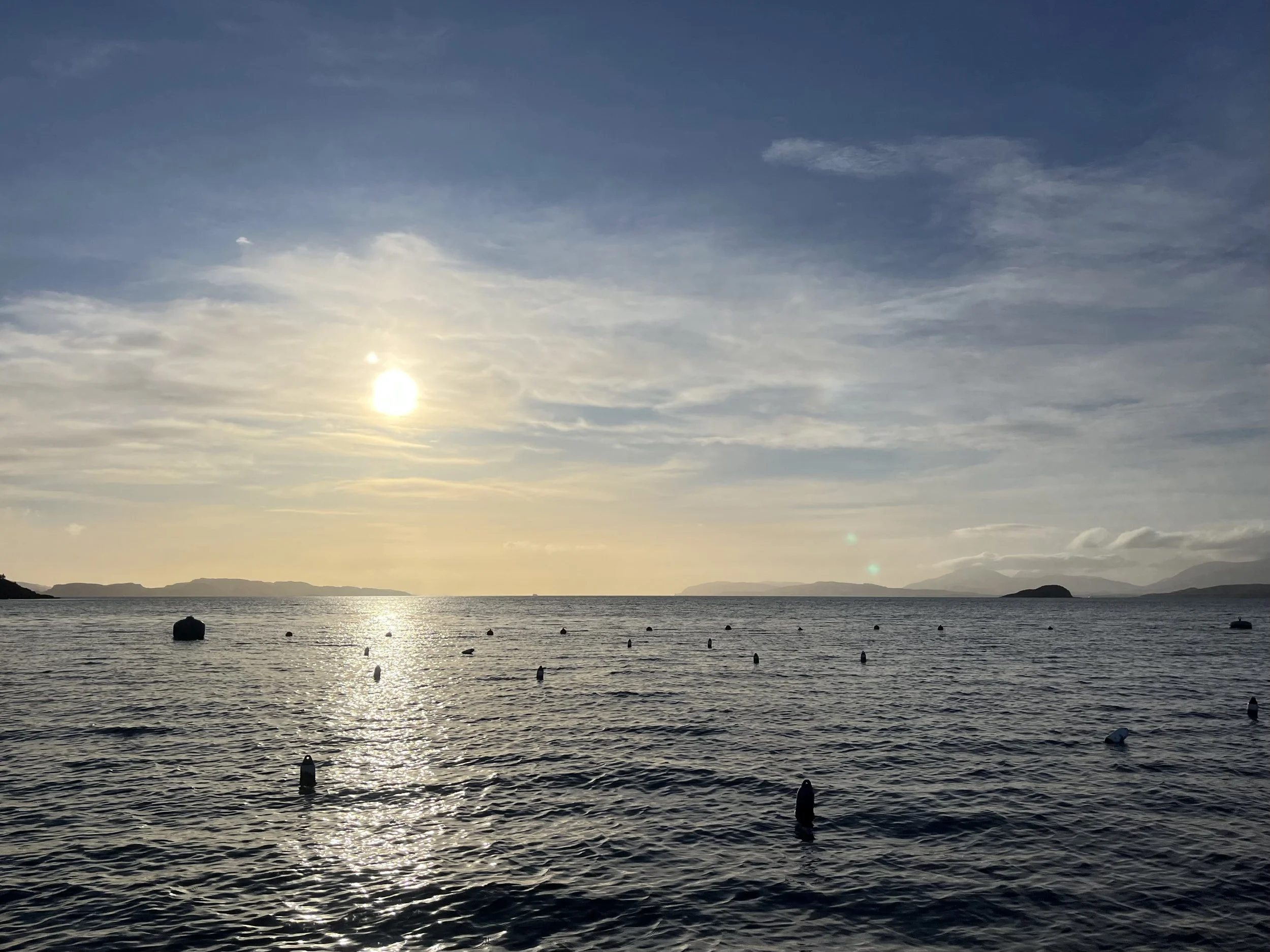 Cameron had a SAMS visit to their seaweed farm with some guests. January is always a tricky month with the weather, however they landed on a cracker of a day. The day after Storm Chandra blew through, a strong blow from the East. It was calm enough to pick up some seaweed lines to monitor the growth.